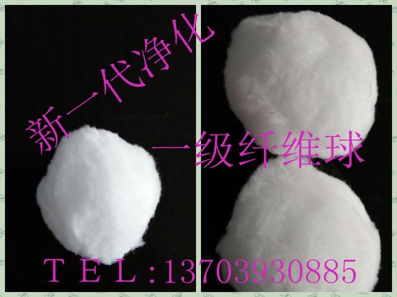 水過濾棉球濾料,纖維球,纖維球濾料, 人工精細制做的纖維球是用優(yōu)質(zhì)纖維絲加工而成,具有載污容量大、過濾效果好等優(yōu)點,適用于各種水質(zhì)的深度處理和精細過濾。呈柔性、可壓縮、孔隙率大、截污能力強;工作時濾層孔隙上疏下密,符合理想濾層的孔隙分布;比重略大于水,易反沖洗,材質(zhì)優(yōu)良有較強的耐磨性和抗化學侵蝕性能。